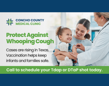 "Our community takes care of each other. Making sure you and your children are up to date on the whooping cough vaccine is one way to do that — especially for the newborns and vulnerable neighbors who depend on us. If you’re unsure of your vaccination status, call us. We’ll walk you through it.” — Amanda Wahmann, Concho Medical Clinic Manager